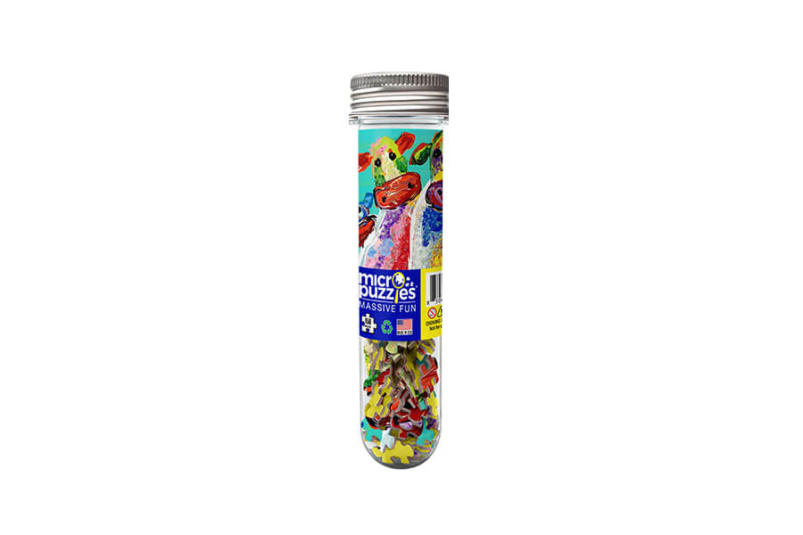 Packed with personality and bursting with color, these funky cows are guaranteed to bring a smile to your face piece by piece.