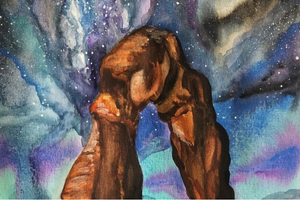 Discover Arches National Park in Utah. This beautiful art illuminates and focuses on the rich desert red rock in contrast to the cool colors of t...